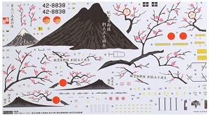 The notice give clearly the area where the multiple decals must be applied, volcanoes, cherry trees on the top wing, and on the both sides of the fuselage. All the visible stencils are there too ( with cockpit instruments). An access ladder and 2 crews are include, but you’ll better find some other( from Hasegawa special ground equipment for example ).