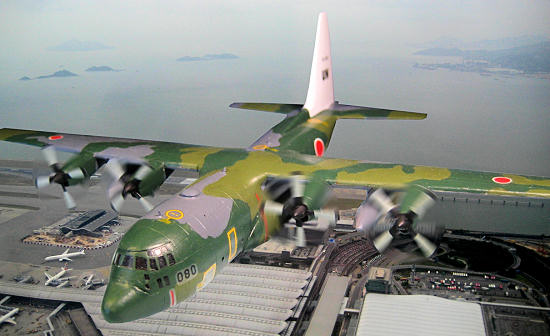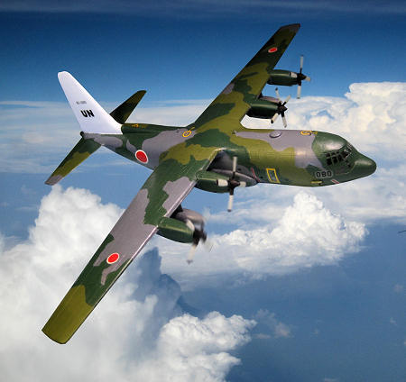 blue-grey Hercules, both from JASDF's 401st Squadron, 1st Air Transport