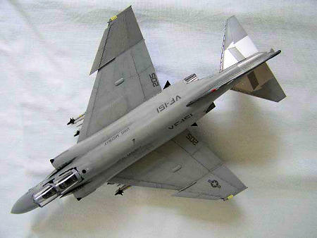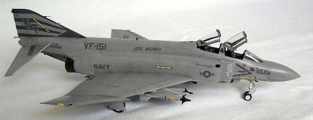 Hasegawa’s kits are the weapons of choice when building Phantoms in 1/72 (and I guess in 1/48). This particular boxing, no. 00834 “USS Midway Low Visibility” is a very interesting kit with lots of extra parts and four excellent choices in the decal sheet, catering for both late F-4Js and Ss. As all their brethren, cockpit is completely bare, with decals for instrument panel and consoles, so the Eduard SS209 was used for the cockpit and the Airwaves AC48-14 for the canopies. They are also stripped of armament, only fuel tanks and missile rails are included, so some weaponry from the Hasegawa Weapons Set no. VI was added.