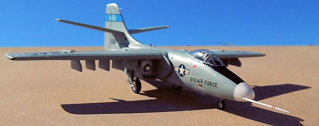 Wheel wells were light gray, the rest of aircraft was airbrushed in ADC gray FS36473 using Model Master brand. Tail fin band was sky blue and not gray as indicated. Decals issued were of good quality and applied in normal fashion. Systems command crest was attached to rear port side. This came from Micro Scale decal sheet which indicating crew from that command involved in the evaluation programme. This was in fact carried on the aircraft during later stage.