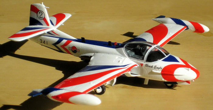 This is a great kit and it's nice to have such a colourful jet on the shelf. Even if you're not a fan of aerobatics teams, or even if a ROKAF plane is a bit out of the boundaries of your collection, having something like this breaks up the grey or cammo on your shelf top flightline. The kit is easy to build.