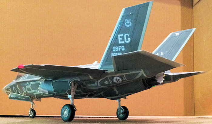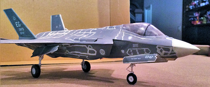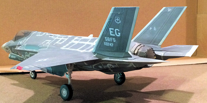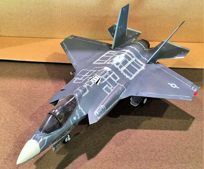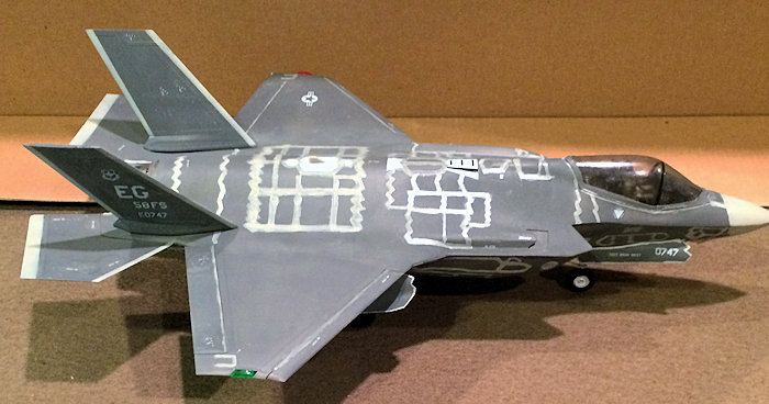 The main color call out is wrong. The main color is not gunship grey. It’s a shade lighter. However, right now there are no manufacturers that make this color. Also, if you look at F-35 pictures, you will notice from certain angles, it has a metallic sheen to it. This is the “raptor sheen” named after the F-22. The paint itself contain radar absorbent materials that make the paint shimmer in certain light. To create this, I dropped several paint brush full of “steel” into the airbrush to mix with gunship grey to not only lighten it, but to produce the raptor sheen.
