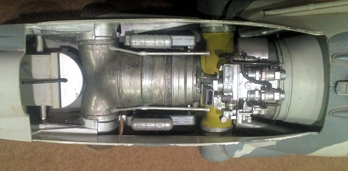 halves are attached, it covers up the engine bay. I assembled the rear fuselage,
