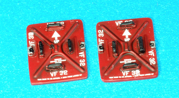 6. I used Fightertown Decals 48082 F-14 Tomcat Data for a variety of detailing items such as the white panel with three-light landing lights, i.e. “the three index lights” on the nose wheel, as well as for some instrument dials.