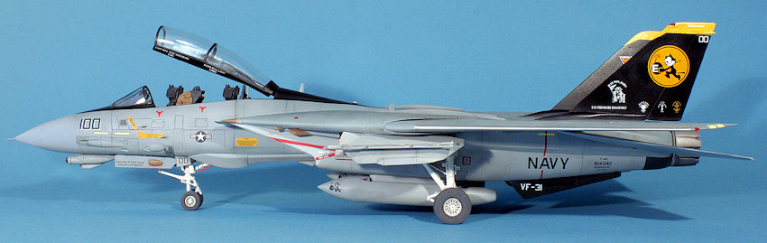 | NOTES: | Wolfpack Design F-14D Conversion, Black Box F-14D resin cockpit, Wheelliant F-14D resin wheels, Crossdelta decals. |