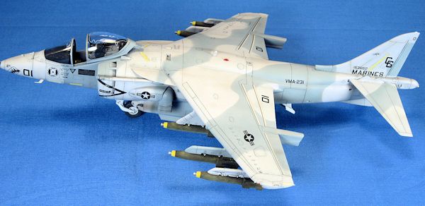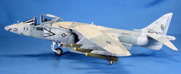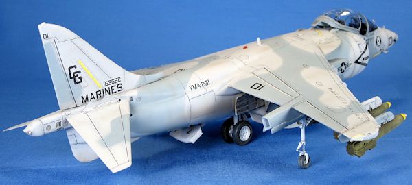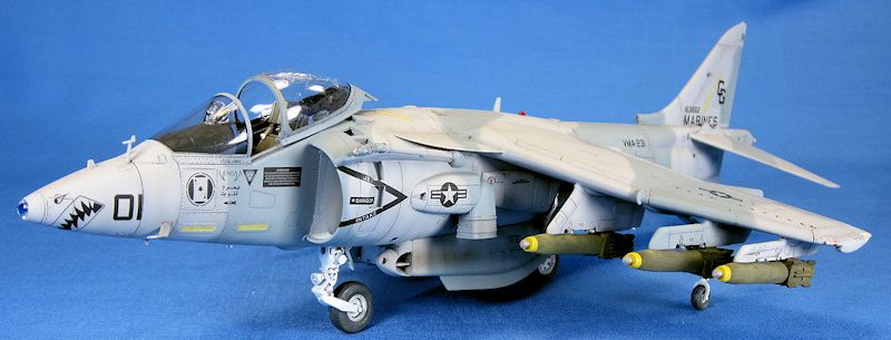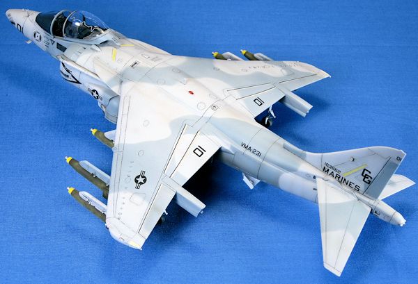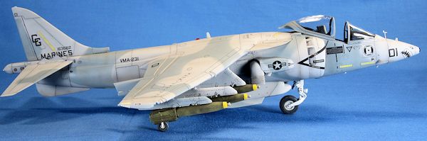 Nonetheless I’m proud of this model and very much like the way it came out. The Harrier is very “cool” looking jet, with a sort of menacing, bug-like stance. While I’ll stop short of recommending the kit as a general statement, if you like Harriers and aren’t afraid of using your modeling skills, this could be the one for you.