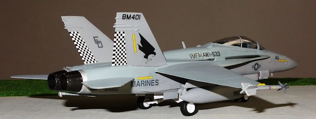 build something else and write your own review!In the US, I think the F-18D only flies as an actual attacker with the Marines, for which it replaced the A-6 in the night/adverse weather attack role. Lots of people commented on this at the time, suggesting the Hornet didn't have the range of the Intruder. Well, maybe not, but then again the Intruder couldn't escort itself into a hot target zone. The Hornet demonstrated this capability in the Gulf War, shooting down MiGs en-route to hitting airfields with bombs. Also, for the moment at least, it’s not envisaged to do the same kind of missions the Intruder might have had to do (deep, probably one-way, penetrations with nukes into Soviet territory being the obvious redundant role). The US Navy chose to replace its own A-6 aircraft with the “Bombcat”, a tricked out F-14 Tomcat, until that was replaced by the Super Hornet. Apparently keen to get the F-35 (once known as the Joint Strike Fighter), the Marines chose to stick with their legacy Hornets rather than upgrade to Superbugs. Elsewhere, Malaysia, Kuwait, Switzerland and Finland have –D models in their squadrons. Australia replaced its F-111s with the two seater F model Super Hornet, which is a similar plane to the -D but more modern.