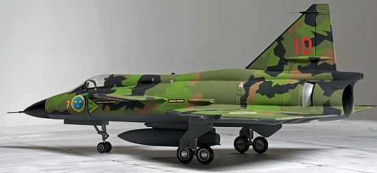 for the final finish. The canopy was masked and glued in place and the Viggen