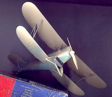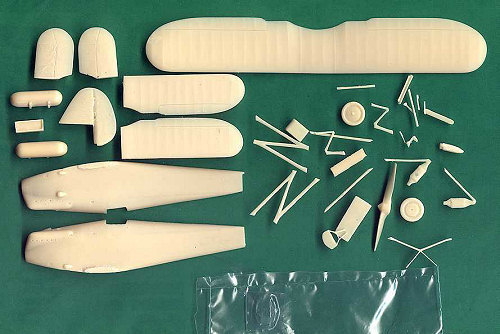 This is a resin kit with fine surface detail to forward of the nose area and nice ribbing detail on the fuselage and wing surfaces of high quality. Being a resin kit the price is also on the upper limits but it is fair to say that it is worth every cent in view of its high accuracy. The light tan coloured resin parts consist of the fuselage halves, wing parts, propeller, fin and rudder and a wafer for al the tiny parts such as the wing struts, undercarriage struts and wheels, tail skid, fuel tanks with separate pylons, cockpit floor, foot pedals, control column, instrument panel etc. A vacform cockpit windscreen is in a separate small polythene pack and care must be taken not to mislay this tiny transparent part. The most intricate part of them all is a box-like radiator, which is prominently fitted under the fuselage just ahead of the lower main planes. This is finely reproduced in resin with all the tiny radiator fins that are intricately raised and defined to the correct scale.
