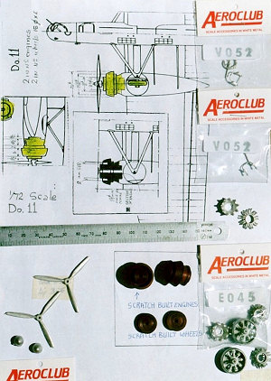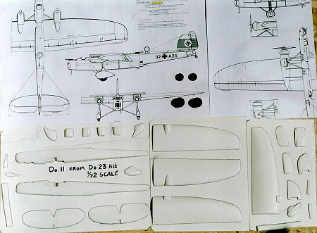In line with every kit project, I have first produced accurate 1:72 scale plans of the Do-11D. , Made a careful study and mock comparison of the Do-11D scale plans and the Do-23 plans issued with the kit. In doing so one detects the principal differences that lies between these two Dornier types. Having done that one put down note such as to the sequence and source one will use. Then I went over the planning of constructing and converting the kit.