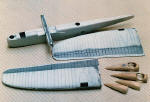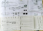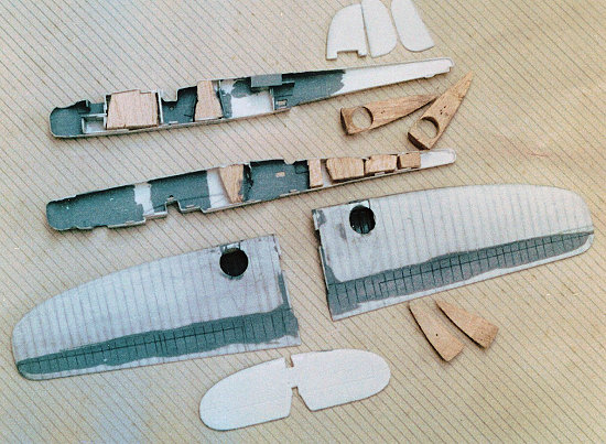 2 The panel lines on the main planes and tail planes were marked with a tracing paper and carefully scratched over the surfaces. This operation was done before the wing halves were put together. The ailerons and elevators trim tabs were also produced with reference to scale drawings.