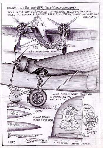 This situation involved so many problems and was somewhat confusing, so much so there then evolved the Do-23. This re-design of the Dornier bomber, although still very closely resembling the original Do-11, had rectified every fault with the final design. This consisted of redesigned and strengthened wing spars, flap function, in-line engines in place of the radial ones and best of all a sturdy fixed undercarriage. The Do-11s were hastily removed from German service. The serious problems were not so much evident at the time when they were delivered to Bulgaria in 1937. Even so the German pilots dreaded this bomber outright. It said, the experienced and apparently more able and willing Bulgarian pilots at the time, in spite of all the difficulties attached to this bomber, have managed to take out three years of active service on this machine.