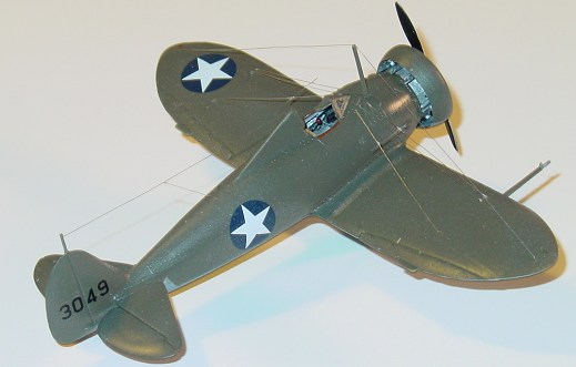 telescopic gun sight. Decals were no problem on this one.I first sanded off nearly all of the rivet detail, as the airplane WAS flush riveted. I used the seat as a pattern and rebuilt the entire interior, using photos in the Bowers book as a reference. Kit instructions say to paint the interior "light green" but Army aircraft interiors from this time period were bare aluminum, and they were rarely repainted. A new seat, side details, instrument panel, and other "goodies" were scratch-built. The cockpit opening is very small on this aircraft, but at least I know that it looks like the real thing. There are no wheel wells on a fixed gear airplane, so that makes things easier.