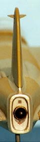 Once all decals had dried, I gave the model a sealing coat of clear gloss. All control surface and engine access recesses were given a wash of India ink and the model was given a finish coat of Poly Scale Clear Flat, which was rubbed out with a cotton rag the next day. The Bare-metal masking was removed from the canopy sections and the clear areas were polished with Meguire's Mirror Glaze #3 before receiving a coat of FUTURE. All subassemblies were attached using super glue gel for the landing gear, Elmers for the exhaust nozzle, and Model Masters Clear Parts Cement for the horizontal stabilizers. No radio or lights were on the He-178, so aerial wiring and navigation lights did not have to be added.