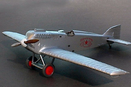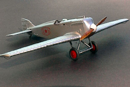 After an extensive redesign, both aerodynamic and structural, the aircraft was named the IL-400B (also referred to as IL-400bis), that first flew on July 18, 1924 with test pilot K. K. Artseulov again at the controls. The new plane retained the plywood-covered fuselage mated with entirely new wings, horizontal tail, and rudder constructed of corrugated and ribbed aluminum. Armament was provided in the form of two synchronized 7.62-mm machine guns mounted in the upper cowling and firing through the propeller arc. At first a Lambdin-type radiator was used between the landing gear struts, but this soon gave way to a honeycombed radiator mounted flush with the underside of the forward fuselage. Subsequent testing by A. I. Zhukov and A. N. Yekatov was done and in October 1924, the IL-400B was cleared for production and designated I-1 (Fighter-1).