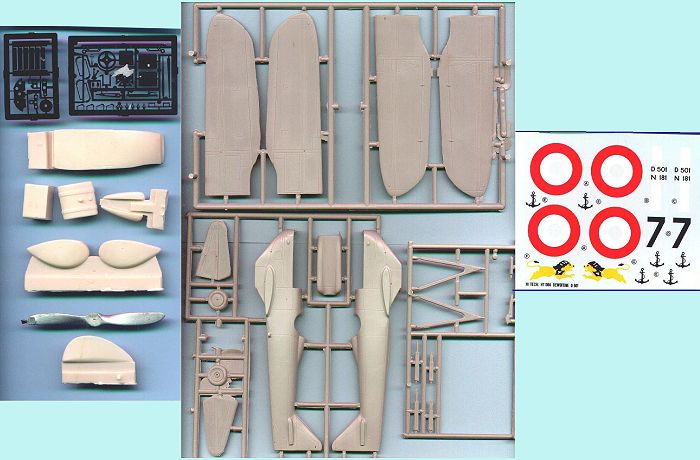 The plastic parts appear to have better fit than did those of the P-63 (it would have been hard to be worse), and the moldings are clean for limited-run kits, though the engraved surface detail is a bit heavy, and will likely remain such under a coat of paint, since the airplane was in natural metal finish.