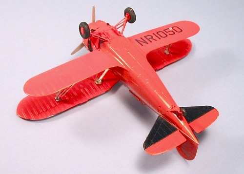 Since the model is overall orange, I had assembled the landing gear with the fuselage sub-assembly. The entire airframe other than the interplane “N” struts was painted with the kit paint and set aside to dry. The “N” struts were painted with Alclad II “Polished Aluminum” after being primed with the correct Alclad primer. The prop was also painted with Alclad.