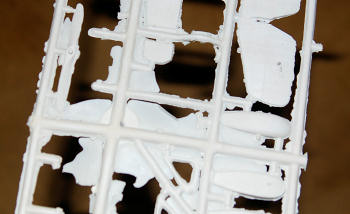 Mostly molded in flash, the semi-rigid styrene is quite tough to cut and