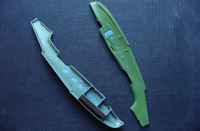 These seams required as much time filling and sanding as did the main hull, I used Bondo finishing putty to take care of the divides, with frequent sandings between coats, then rescribing details lost in the process.
