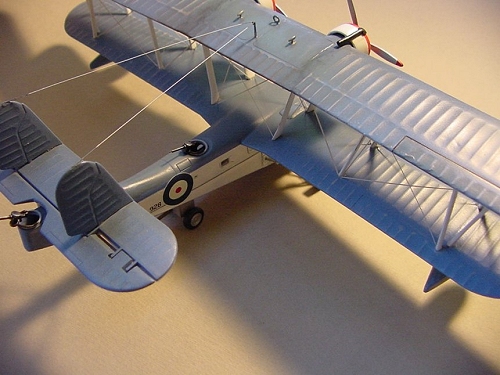 When you go to attach the upper wings to the center section, glue the inner struts (82-85) first, making sure that the wings are centered and at the right dihedral. After this whole thing has set up, attach the uprights (90 and 91) then the angled struts.