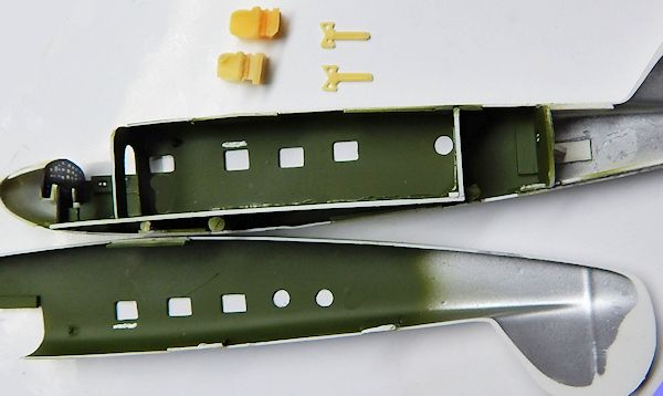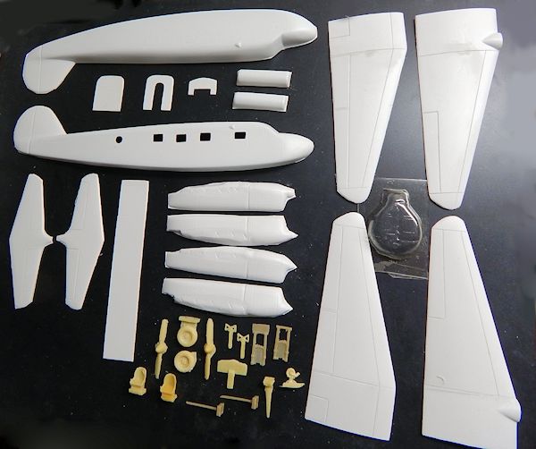 and two bulkheads. Resin parts comprise two main wheels and legs, a tail wheel,
