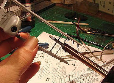 the wings. I drill small "dimples" where the rigging attaches and use individual