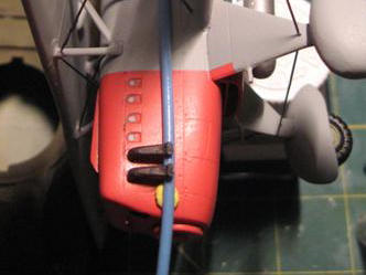 At this point I glued the interplane struts and cabane struts in place. For those that may not be familiar with biplane terminology the interplane struts are the outer wing struts while the cabane struts are located on the fuselage in front of the cockpit. The attachment points on both the wings and the struts are, in a word, lousy. The interplane strut holes in the wing are practically non-existent and they all have very thick flash at the end of each strut were the nub should go into the hole on the wing. Plus, the forward angle of the interplane struts are not molded into the strut meaning that the struts are glued into place 100% vertical instead of at the proper angle. Not paying closer attention to this detail would have dire consequences for me later on. The instructions do illustrate the main struts at an angle as do the pitcures in William Green’s Warplanes of the Third Reich. As a novice biplane builder I should have simply paid better attention to this area and I did not. But it does not excuse the lack of the proper mounting angle and to achieve this will take some measuring, patience and teeth-gnashing on the part of the builder. Limited-run or not this is just poor product planning IMHO. Anyhow, I drilled out the attachment holes on the wings and cleaned up the flash on the struts the best I could.