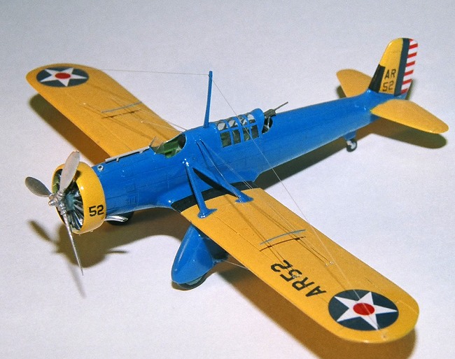Air actions in the war had hinted at the potential of what we now call close air support, but by the time the ground-bound generals decided to cash in on the possibilities more than a decade had passed since the armistice. When they did, they found themselves frozen in a moral midstream between rapidly accelerating technology and the tried but untrue techniques of the past. Their muddlings resulted in a curious chimera: a metal moncoque fuselage still sitting on fixed, heavily spatted landing gear; a single wing sporting flaps and slats but still tuck on with struts and wires; a liquid cooed inline harnessed to a fixed pitch prop; all directed from an open front office (the A-8 did have a canopy hood but references show this deleted and say pilots generally flew with a stiff breeze on their cheeks). Before the A-8 went into full service, the designers (or at least the specifiers) decided that a big amount of drag was a small price to pay for the reliability of a round engine; ergo the radial A-12 with reconfigured cockpits and other refinements.