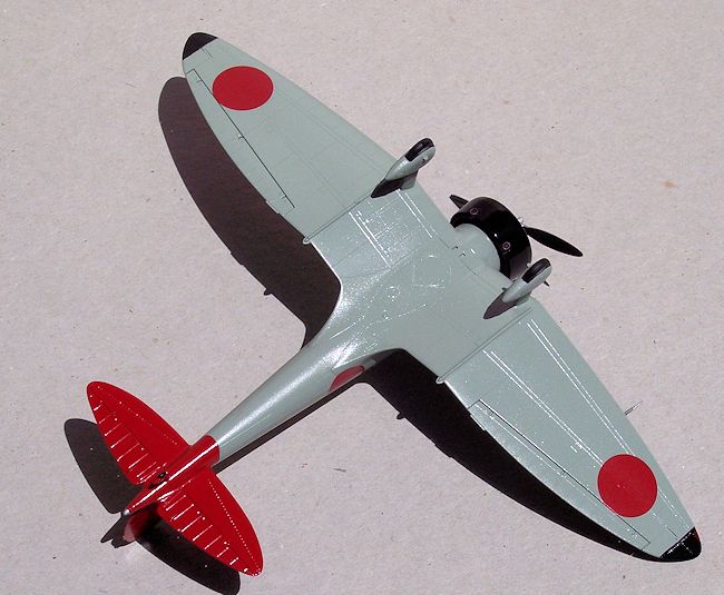 know as IJN Grey, Tamiya color XF-12. The tail was painted in red, along with
