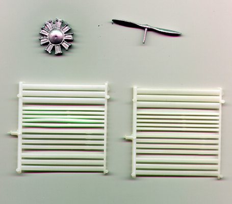 The white metal engine and prop replace vacuformed pieces. Made by Aeroclub, they are cleanly cast and nicely detailed, though the engine will need push rods and ignition harnesses to look the most convincing. Two “frets” of white plastic struts are also provided. These are airfoil-shaped in various widths.