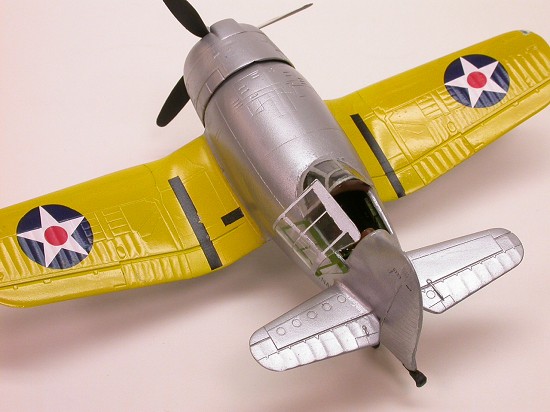 I used a Dremel tool to cut out the underside of the F4U fuselage so that