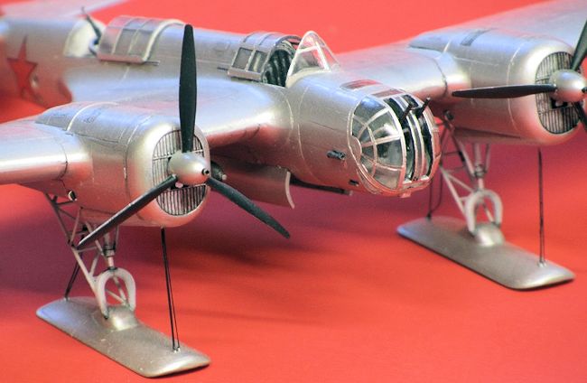 The Ukrainian firm ICM came to the rescue in late 2007 with the gem reviewed here. Six sprues of grey and one clear plastic with some of the most realistic stressed-skin surface detail ever put into an aircraft kit--though it won’t be to everyone’s taste as it is not the dull recessed style put out by the likes of Hasegawa and Tamiya. Parts count totals about 180. Control surfaces are separate, and options abound, including wheels or skis, two- or three-bladed props, choice of gun types and windshields, single and dual-gun noses, and a good supply of nicely-rendered FAB-100, -250, and -500 bombs. There’s a little flash here and there. The only flaw on my sample was that main wheels were short-shot, forcing an early decision to go with the fixed-ski version. The sprue layout suggests the possibility of the later M-103 version; not announced by ICM to date.