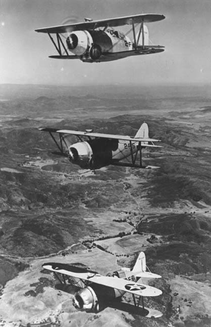 “After returning to San Diego in 1932, we received Fighting Three's worn out F3Bs, which were supposed to be good high altitude ships. Those F3Bs were the best gunnery ships and dive bombers we ever had, and the squadron really knocked out the gunnery score that year. That was the year I was lucky enough to get 60 hits out of 60 rounds of ammunition and four out of four in bomb hits with drops on a 45 x 90 foot target. Only the 45-foot square center counted as a full hit, and umpires flying around the target at 1,500 feet made sure you were out of the dive at that altitude.