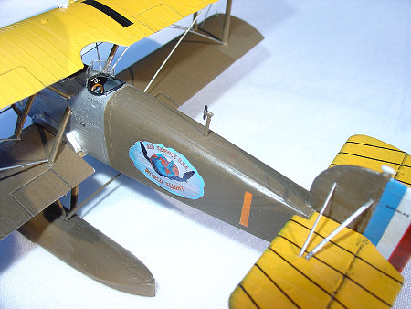 It should be noted that one of my biggest fears of bi-plane model construction -- the dreaded wing assembly -- was a relative breeze. This was so because the inboard wing struts are built into the fuselage and thereby provide the stability needed for linking the top and lower wings. My order of battle entailed finishing the fuselage, gluing the outboard struts onto the lower wing and after they dried, gluing the top and bottom wing to the inboard struts and when they in turn tried, finally warping the wings so as at glue the upper wing to the outboard struts. The only problem I experienced was that the design of the inboard struts into the fuselage required filling and sanding of gaps that were beyond what my modest modeling skills allowed. Hence, the wings assembled well but my inboard struts do not blend well into the fuselage. Filling and sanding always seem to be my tragic modeling flaw -- proving Aristotle‘s conclusion that every tragic hero has within him the seeds of his own destruction.
