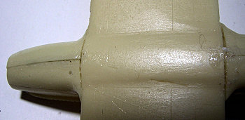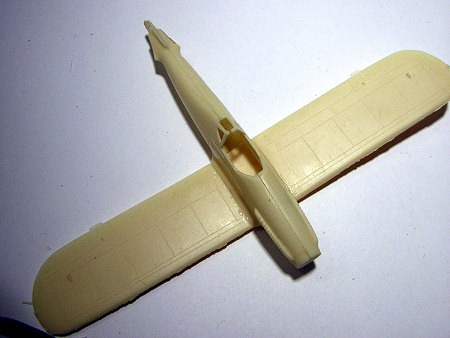 The only shape issue I might raise is the thin-ness and lack of camber of the wings. But that may be entirely accurate. As far as bubbles and boo-boos, I initially found only one on the stabilizer leading edge. After assembly and priming, however, I discovered that both wing leading edges were badly infected. That was easily fixed with a stroke of a filler-filled brush. Filler was also needed in the wing-fuselage joints.
