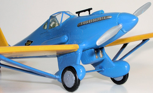 Some small parts either weren’t included or weren’t recognized as such. The tailplane struts were formed from Evergreen strips. The gun sight from .025 rod. Pitot tube came from an inch of wire. A length of hypodermic needle (blunted) is provided for the gun barrels, but I omitted these, as the few available photos did not evidence them; and it is doubtful the little plane was ever tested in an armed configuration. Performance without the guns was reportedly bad enough to get it the heave-ho prior to that stage of audition.