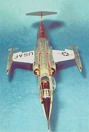 I don't think there is a "bad angle" from which to view an F-104. This is surely the most dramatic-looking airplane ever made. Hasegawa's model fully captures the lines of this airplane which - with the B-58 - epitomizes U.S. aeronautical philosophy of the 1950s: faster, higher and faster yet.
