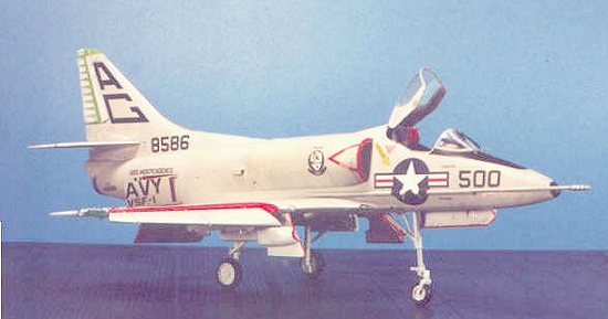 Several aftermarket sheets have already been released, including several sheets of A-4C and A-4L aircraft from Eagle Strike and two (Now four. Ed) sheets of A-4Cs from Super Scale. I chose to use the sheet from SuperScale that had the markings for an A-4C of VSF-1 assigned to U.S.S. "Independence" during a Mediterranean cruise in 1966.