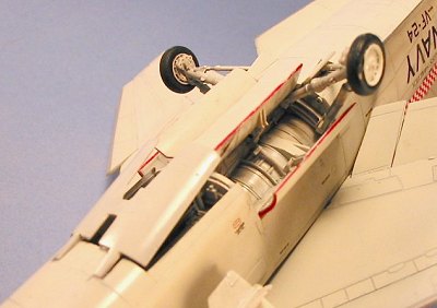 I placed the ejection seat in the cockpit and attached the canopy in the open position. I chose not to enlarge the "ears." It's not that apparent to the casual viewer (unless their name is Steve "Snake" Mesner, but then nothing ever gets past him), and not having separate "ears" means there is one less thing likely to be broken whenever the model gets moved.