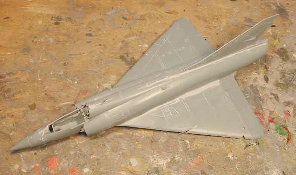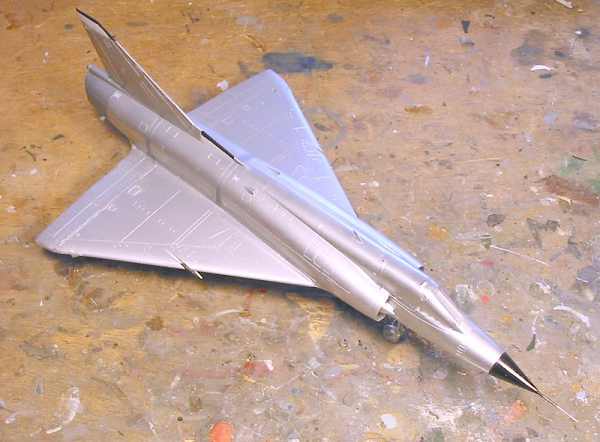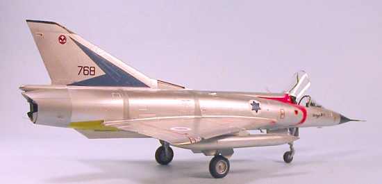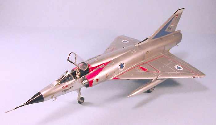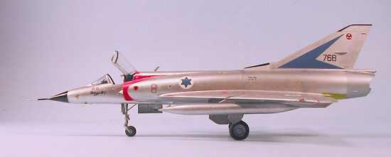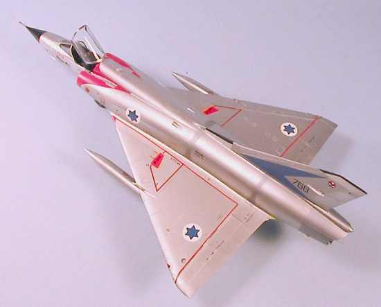 I am a fan of deltas for their shape. To me, a disruptive multi-color camouflage detracts from the elegance of line of the airplane being modeled, so I like to do my deltas in one main color whenever possible. The Israeli Mirages used in the Six Day War were all in natural metal finish, and this is what I went with.
