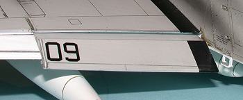 The wings require that the wheel bays be attached before the halves are glued. Eduard photo etch was substituted for the wheel door hinges as well as details inside each well. It was also necessary to remove the dorsal antennae to clean up the seam, aft of the lower speed brake.