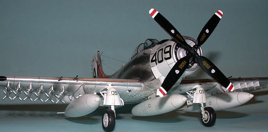 Nice box art, separate plastic bags, nice crisp moldings, excellent instructions. Of course, this must be a Tamiya kit! It is true; the kit is well presented with separate plastic bags for various components, which includes little black plastic lugs for bombs and auxiliary fuel tanks as well as the propeller. The instructions sheet contains ten pages of concise, easy to follow steps with an additional sheet showing the three models that may be built out of this kit, including Va-176, the review subject. The decals are crisp although the colour rendering of the chosen subject is a little too red and prompted some aftermarket decals from Cutting Edge.