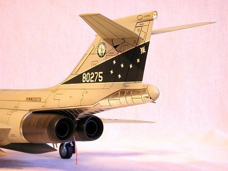 When the gray was dry I removed the masking, then used Testor’s lacquer thinner and a #1 sable-haired brush to remove the overspray from the bare metal areas. The SAGE antenna was attached using Testor’s liquid cement, then painted to match the airframe.