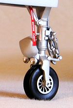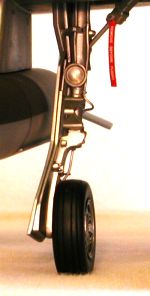 Though the landing gear was extremely well-done, I removed the molded brake and hydraulic lines from the struts and replaced them with bits of Detail Associates model car ignition wire. I drilled out all the landing and taxi lights and installed MV lenses in their stead. Almost as an afterthought I cut new treads in all three tires.