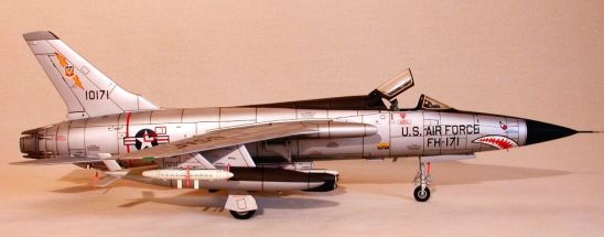 This is the worst kit I have EVER built, and certainly the worst kit that Monogram has ever released. I recommend this kit to no one unless; A) they are willing to accept shape, accuracy, and fit problems, or B) they are willing (and capable) of doing something about them. This is the sole choice for a Thunderchief in this scale, so I leave it to the individual modeler to decide. One can only hope for a new-tool wunderkit from Japan or elsewhere. On a personal note I offer my gratitude to Paul Osborne (one of the true ‘good guys’) in Canada for graciously finding and sending the necessary decals, and to C. J. Lane in Oregon for providing the hapless MiG-25 kit (thanks, Gyrene!).