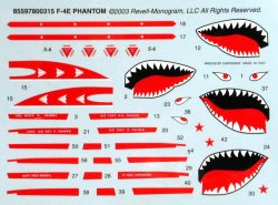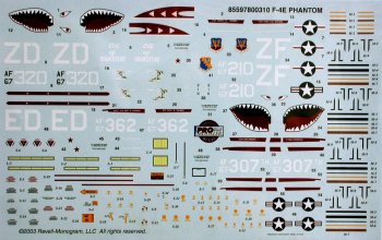 The external stores consist of a pair of 370-gallon wing tanks, a 600-gallon centerline tank, four AIM-7 Sparrow missiles, four AIM-9 Sidewinder missiles with launch rails, and a pair of LAU adapters for each of the inboard pylons (stations 2 and 8) to allow carriage of four AIM-4 Falcon missiles though none of the latter are included. Both the early short and later extended (MIDAS IV) muzzle brakes are furnished, giving the modeler some time-frame latitude.