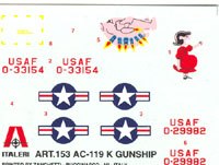 This big, new (2001), Italeri kit is a special limited edition, of the gunship variant of their C-119. (Editor's note: It is actually a reissue as I've seen Testors boxings of this kit from the mid/late 1980s)