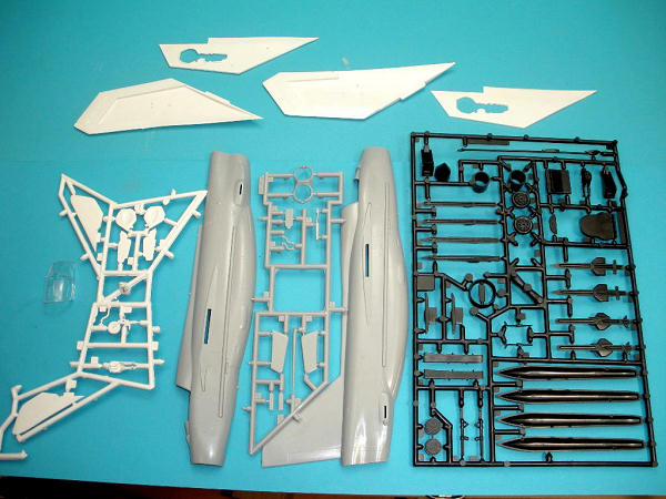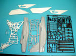 The kit cockpit is better then normal as it has two control columns to go with the two ejection seats (these actually have some harness detail on the upper section) and pilot figures. This kit also has a separate floor, aft bulkhead and an instrument panel with the latter having some raised details.