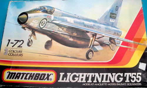 The Lightning F Mk 1 was evolved from the P.1A research aircraft which flew on April 4th, 1957. Further development culminated in the F Mk 6 which flew on April 17, 1964. The initial two seat trainer version was the T Mk 4 which flew in May on 1959. An export version, the T55 was provided to both the Saudi Arabian and Kuwait Air Forces, along with a number of F Mk 53 single seaters. This T55 are the two seat equivalents of the F Mk 6 using the later Conical Camber Wing and the larger square-tipped fin. (Thanks to the kit instruction sheet).