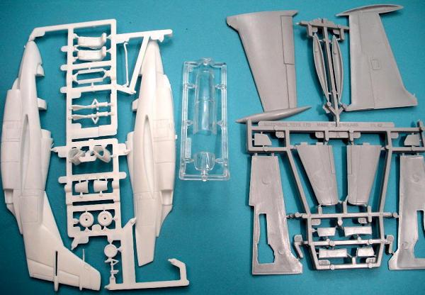 kit has 30 cleanly molded white and grey parts plus a two-piece clear canopy.